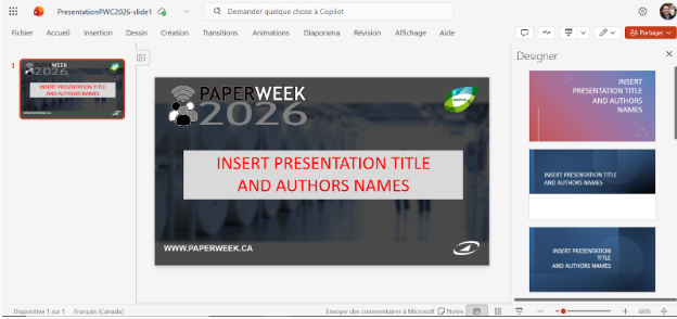 Tous les conférenciers et modérateurs sont fortement encouragés à utiliser l’arrière-plan officiel de PaperWeek 2026 téléchargeable sur cette page. Simplement sauvegarder le fichier sur votre ordinateur, puis ajouter et sélectionner l’image dans vos filtres d’arrière-plan MSTeams lorsque vous rejoignez une session. NB: vous verrez une image inversée, ce qui est normal, l’image apparaitra à l’endroit à l’écran des participants.